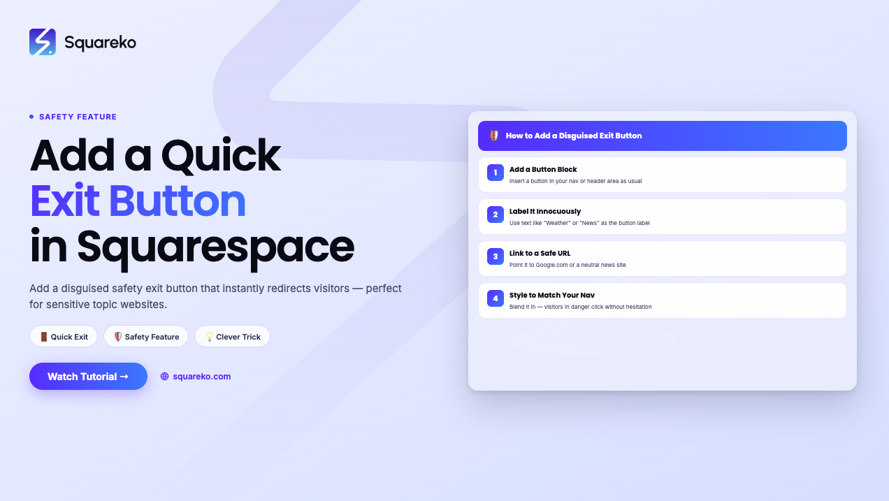With our guided approach, we’ll cover step-by-step professional setup of a Quick Exit Button with custom HTML, CSS, and fully compliant JavaScript that works with Squarespace 7.1 and Brine templates.