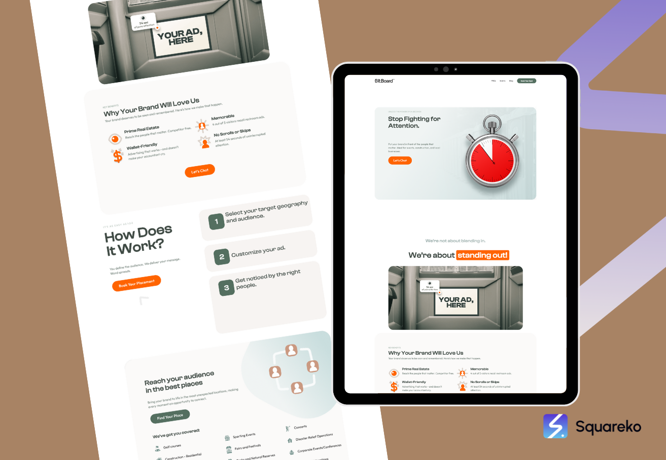 Bit Board Ads provides building and installation services for billboards and signage with the new website designed to reflect capability and design effectiveness. Low visual impact was addressed by adding balanced image galleries, clear service descriptions and an edgy commercial style. Highlights include rich imagery, strong type and simple quote request experiences.