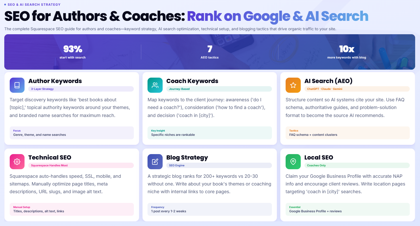 SEO for Author and Coach Websites: How to Rank on Google and AI Search with Squarespace