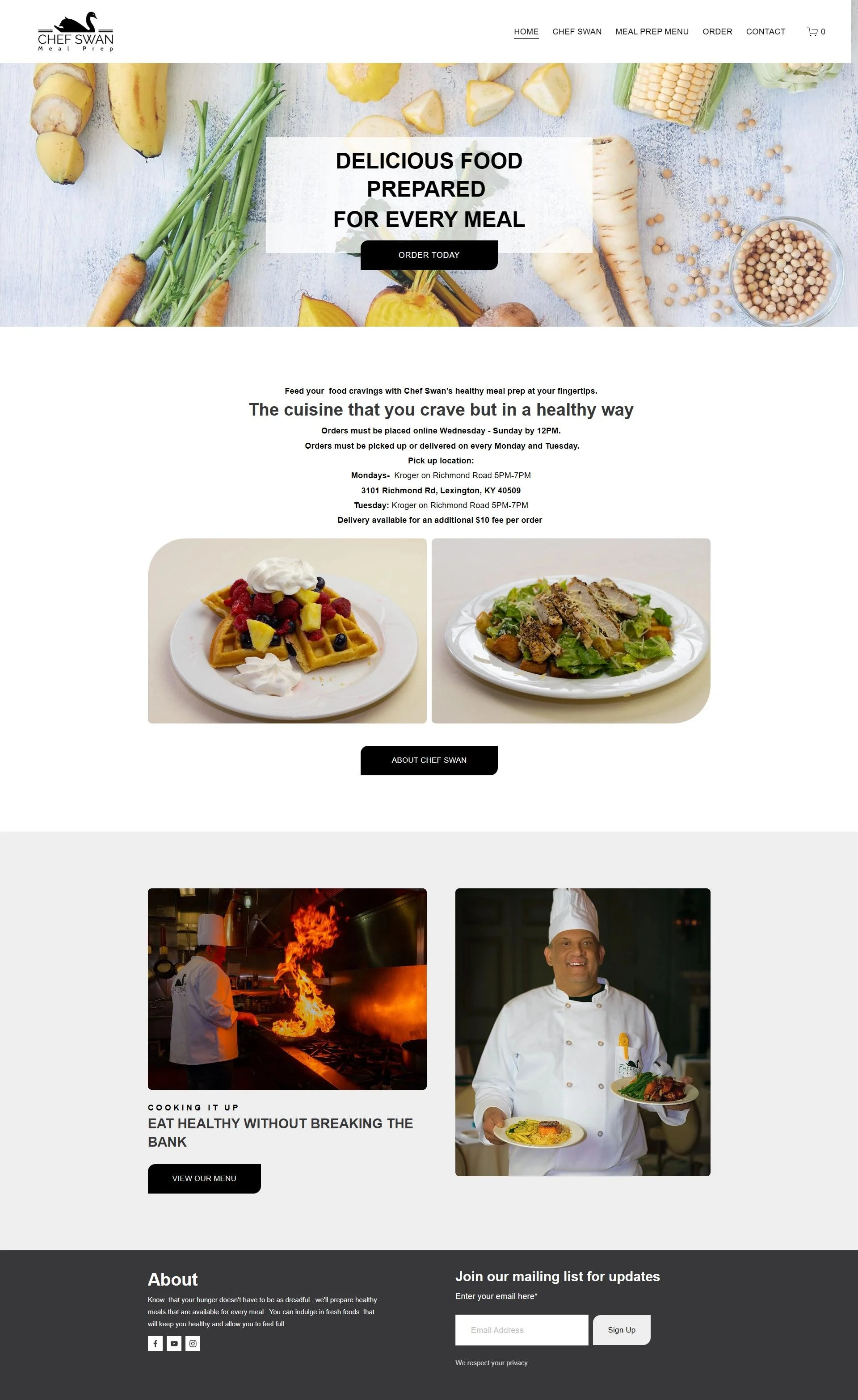 Chef Swan Meal Prep is a premium Squarespace website designed for easy access to healthy, delicious meals. With a sleek black-and-white design, full responsiveness, and an integrated online store, customers can conveniently browse categorized menus and order with ease—reflecting Chef Dwayne Johnson’s passion for food and elegance.
