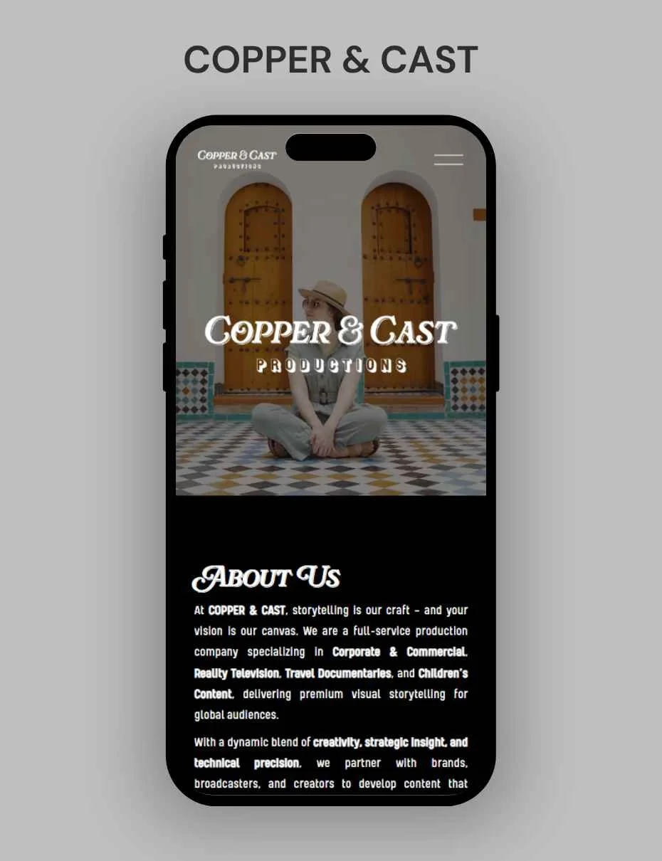 When Copper & Cast partnered with Squareko, the goal was to design a website as cinematic as the work it represents—refined, powerful, and visually immersive.