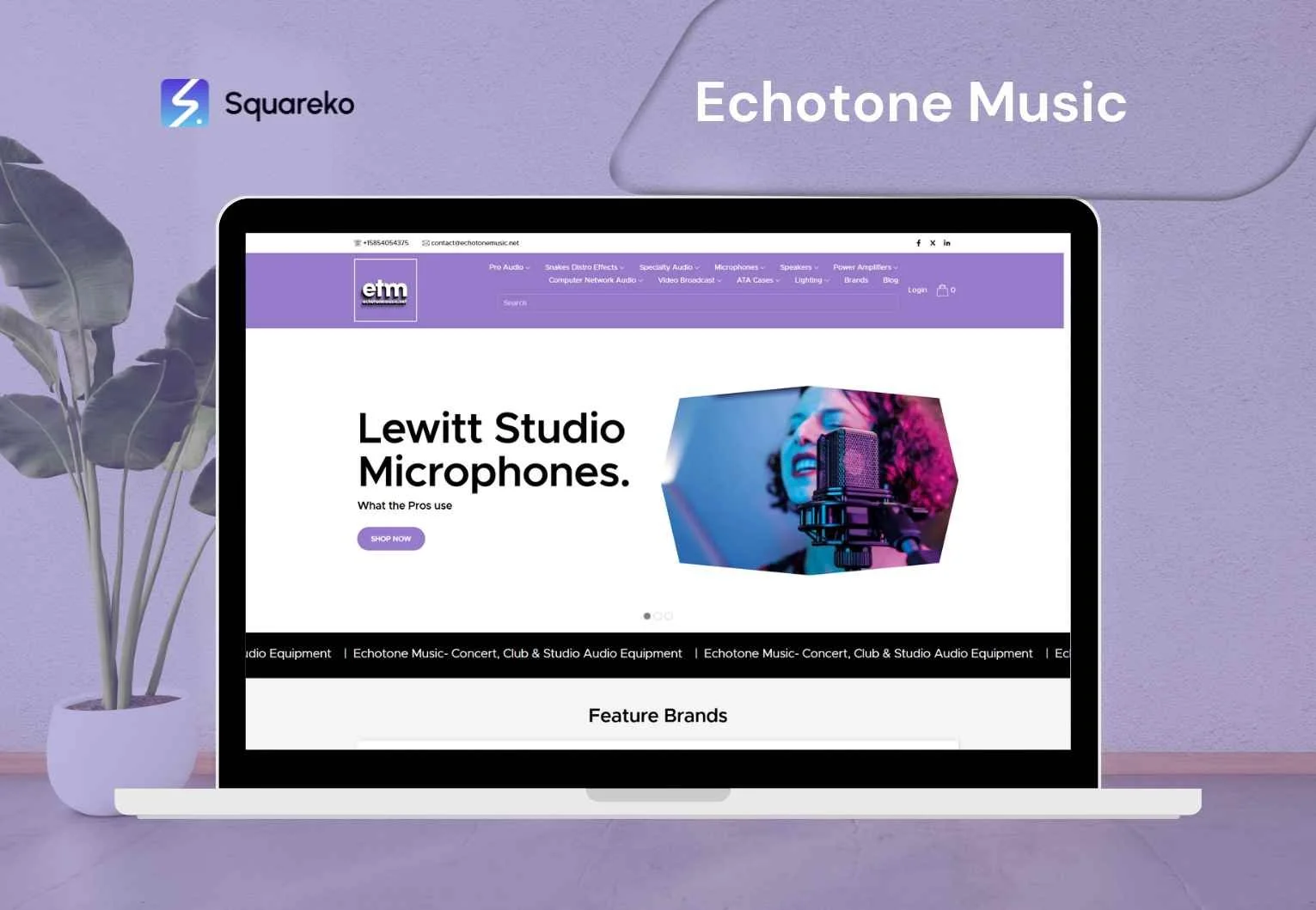 Echotone Music – Pro Audio Equipment & E-Commerce Website Design by Squareko