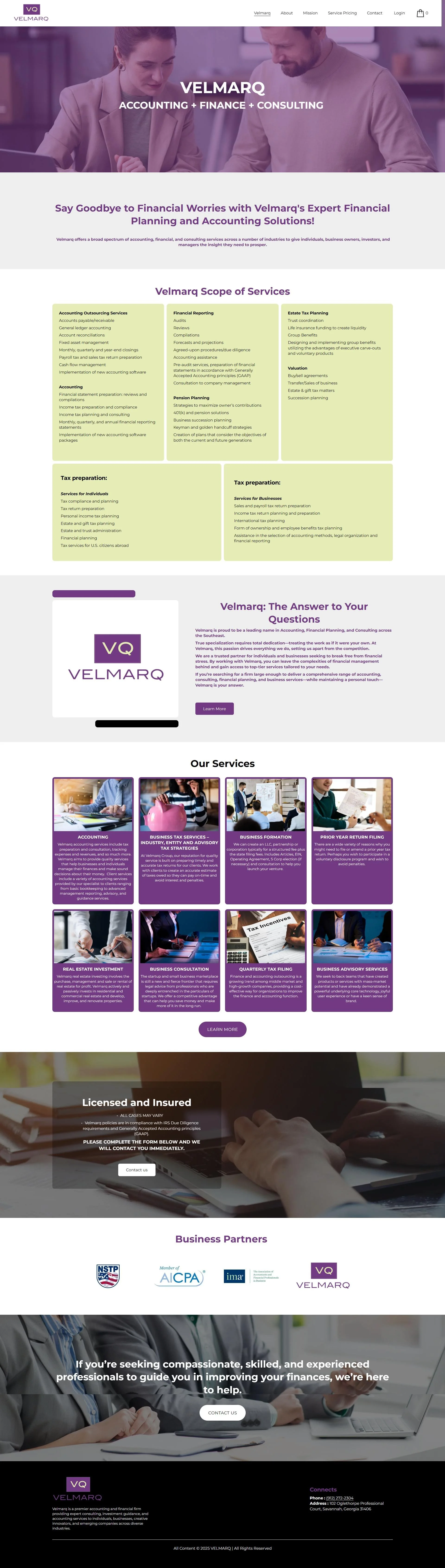 With a focus on SEO, structure, and experience, the site has positioned Velmarq as a trusted leader in accounting and financial planning across the Southeast.